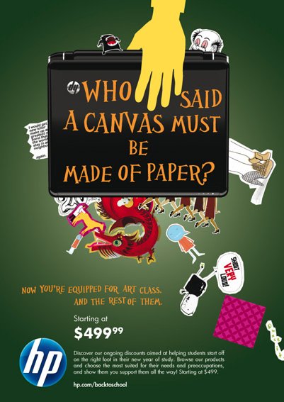 HP laptops / IllustationIn 2008, starting from HP’s existing visual identity, our team was asked to create a series of key visual posters describing the compelling features of HP’s business and student lines of laptops. The series was part of an extensive international pitch effort, teaming up McCann Erickson Bucharest and McCann Erickson Manchester.
